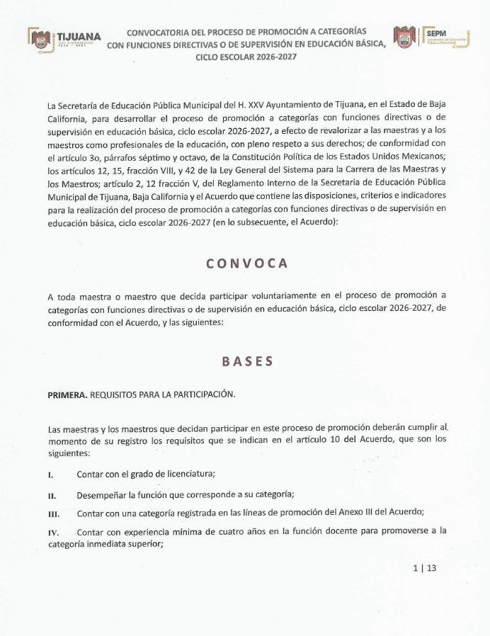 Convocatoria del Proceso de Promoción a Categorías con Funciones Directivas o de Supervisión en Educación Básica, Ciclo Escolar 2026-2027