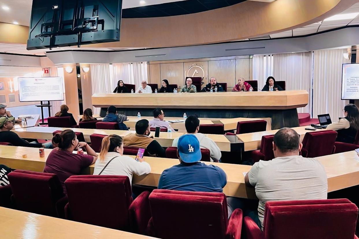 Tijuana, Baja California, a 9 de abril de 2025. El gobierno del alcalde Ismael Burgueño Ruiz, a través de la Dirección de Inspección y Verificación Municipal, impartió el taller a agremiados a la Cámara Nacional de Comercio (Canaco), en el giro específico de bazar, como parte de las capacitaciones continuas a comerciantes, encaminadas a facilitarles los trámites necesarios para el óptimo funcionamiento de sus negocios.