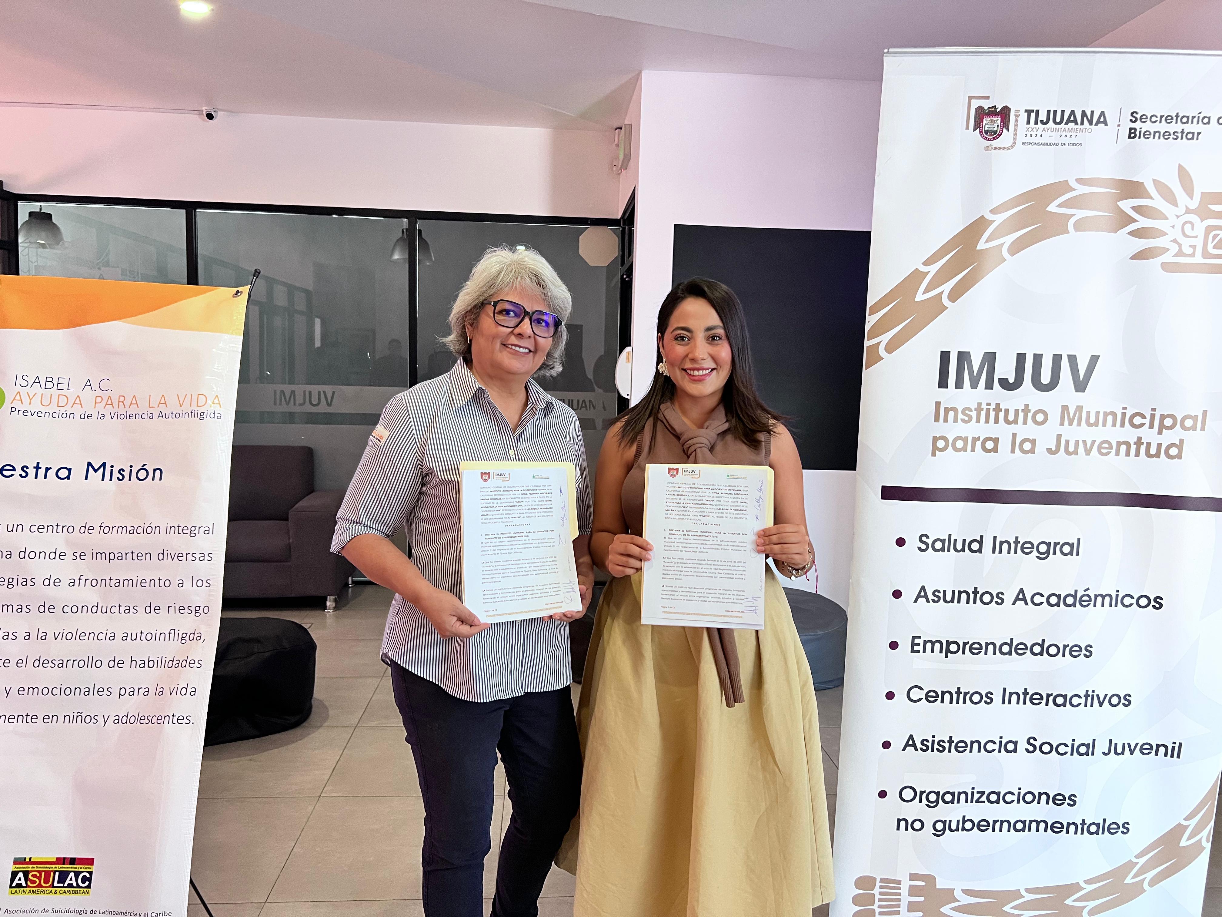 Tijuana, Baja California, a 30 de junio de 2025. El Gobierno del presidente municipal, Ismael Burgueño Ruíz, a través Instituto Municipal para la Juventud (IMJUV), firmó un convenio de colaboración con la asociación 'Isabel Ayuda para la Vida' A.C. con la finalidad de unir esfuerzos para atender casos de violencia autoinfligida en las juventudes tijuanenses.