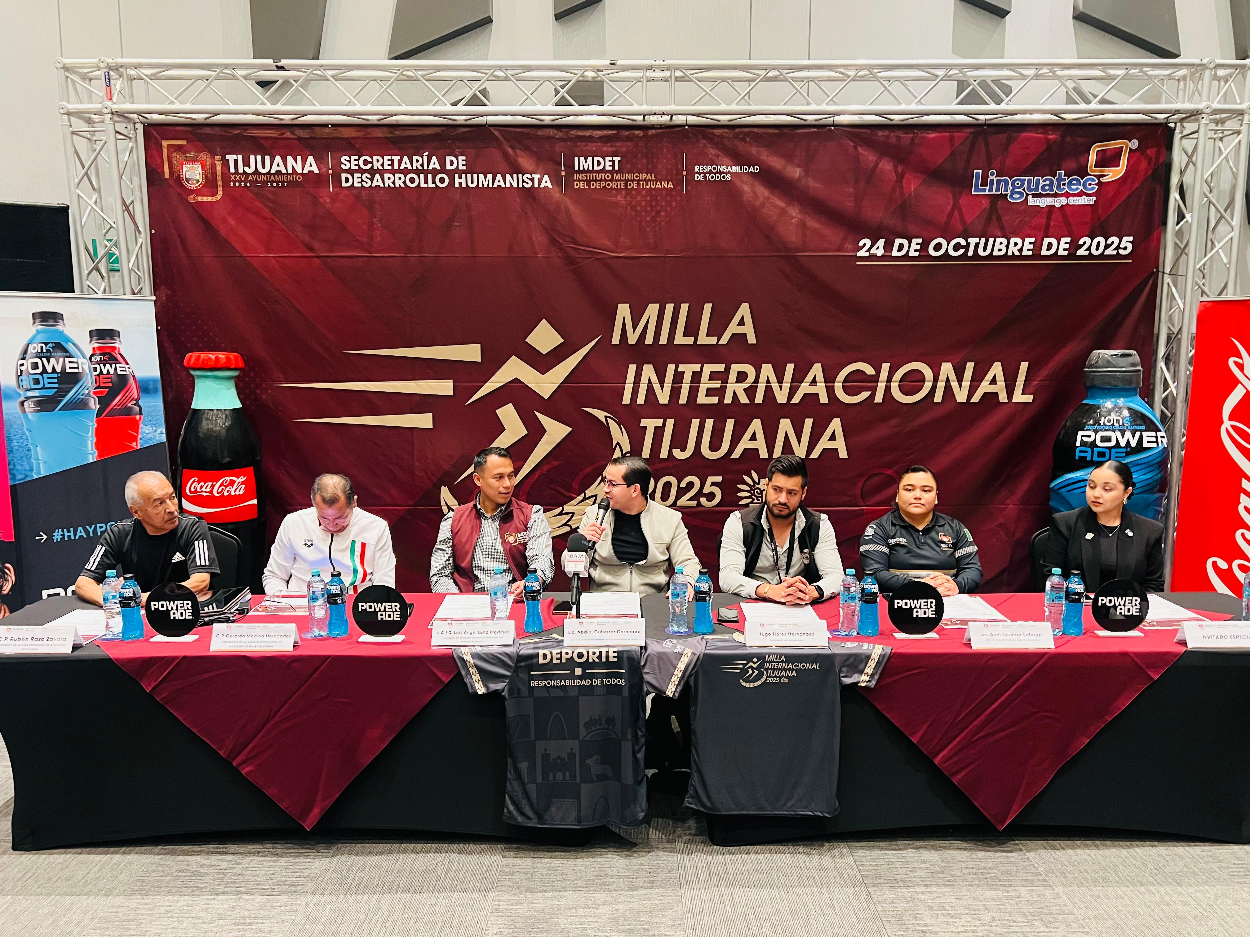 TIJUANA, Baja California, a 8 de octubre de 2025.- El XXV Ayuntamiento de Tijuana, a través del Instituto Municipal del Deporte (IMDET), presentó ante los medios de comunicación los detalles de La Milla Internacional Tijuana 2025, competencia que se llevará a cabo el viernes 24 de octubre, a partir de las 14:00 horas, en la pista atlética de la Unidad Deportiva CREA.