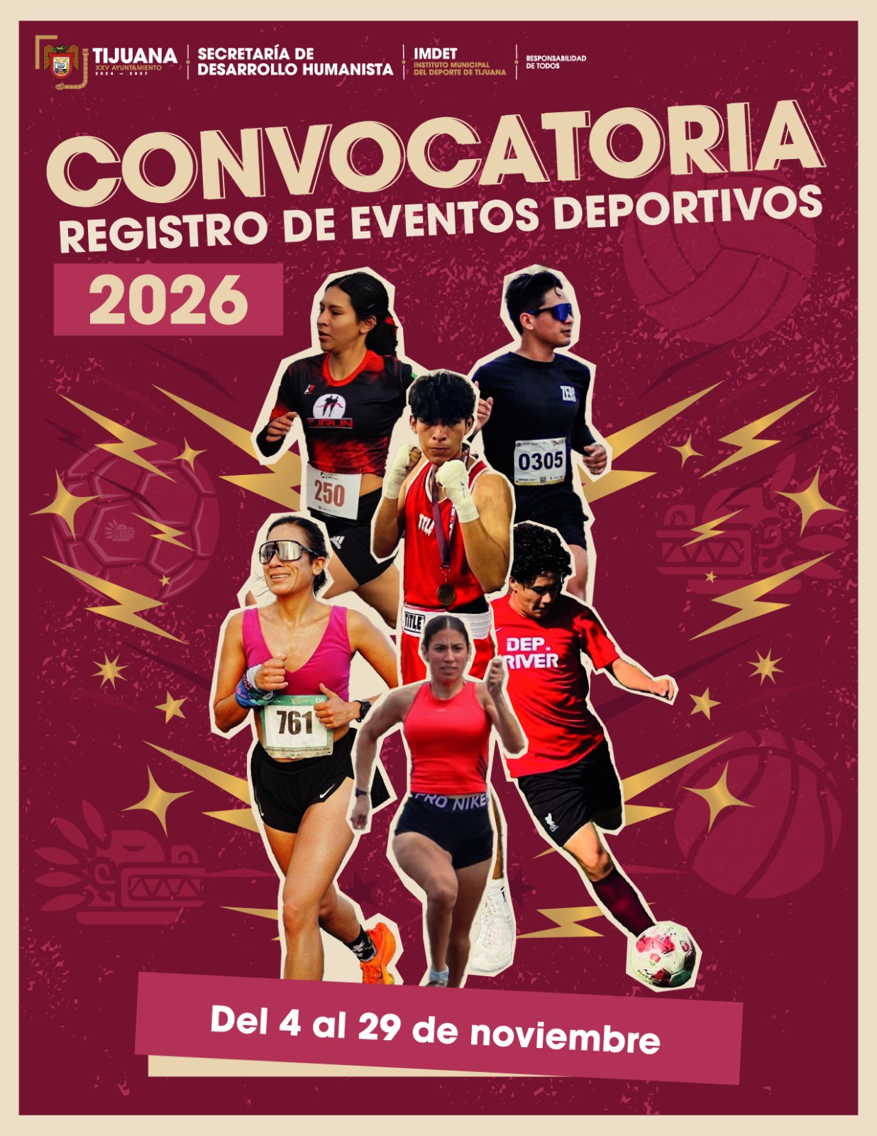 Tijuana, Baja California, 4 de noviembre de 2024.- El Gobierno Municipal, a través del Instituto Municipal del Deporte de Tijuana (IMDET), invita a las ligas, clubes, asociaciones y organismos deportivos de la ciudad a registrar sus competencias para integrarlas al Calendario de Eventos Deportivos 2026, cuyo período de inscripción quedó oficialmente abierto este martes 4 de noviembre.