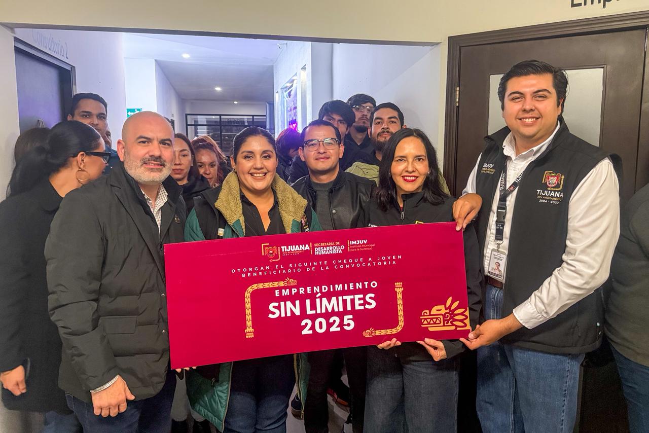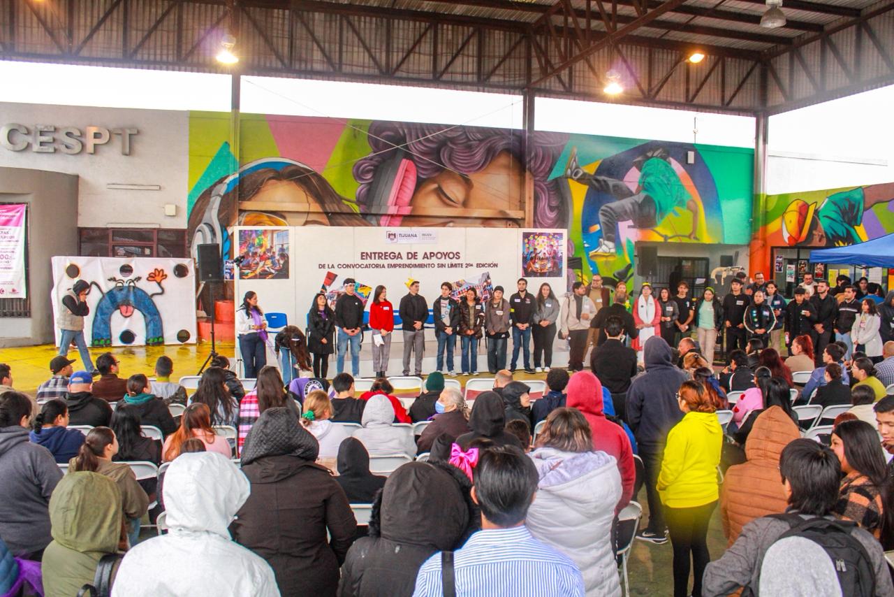 Tijuana, Baja California, a 16 de noviembre de 2025. El gobierno del presidente Ismael Burgueño Ruiz, a través del Instituto Municipal para la Juventud (IMJUV), entregó más de 200 apoyos económicos a jóvenes emprendedores, como parte del programa 'Emprendimiento Sin Límites'