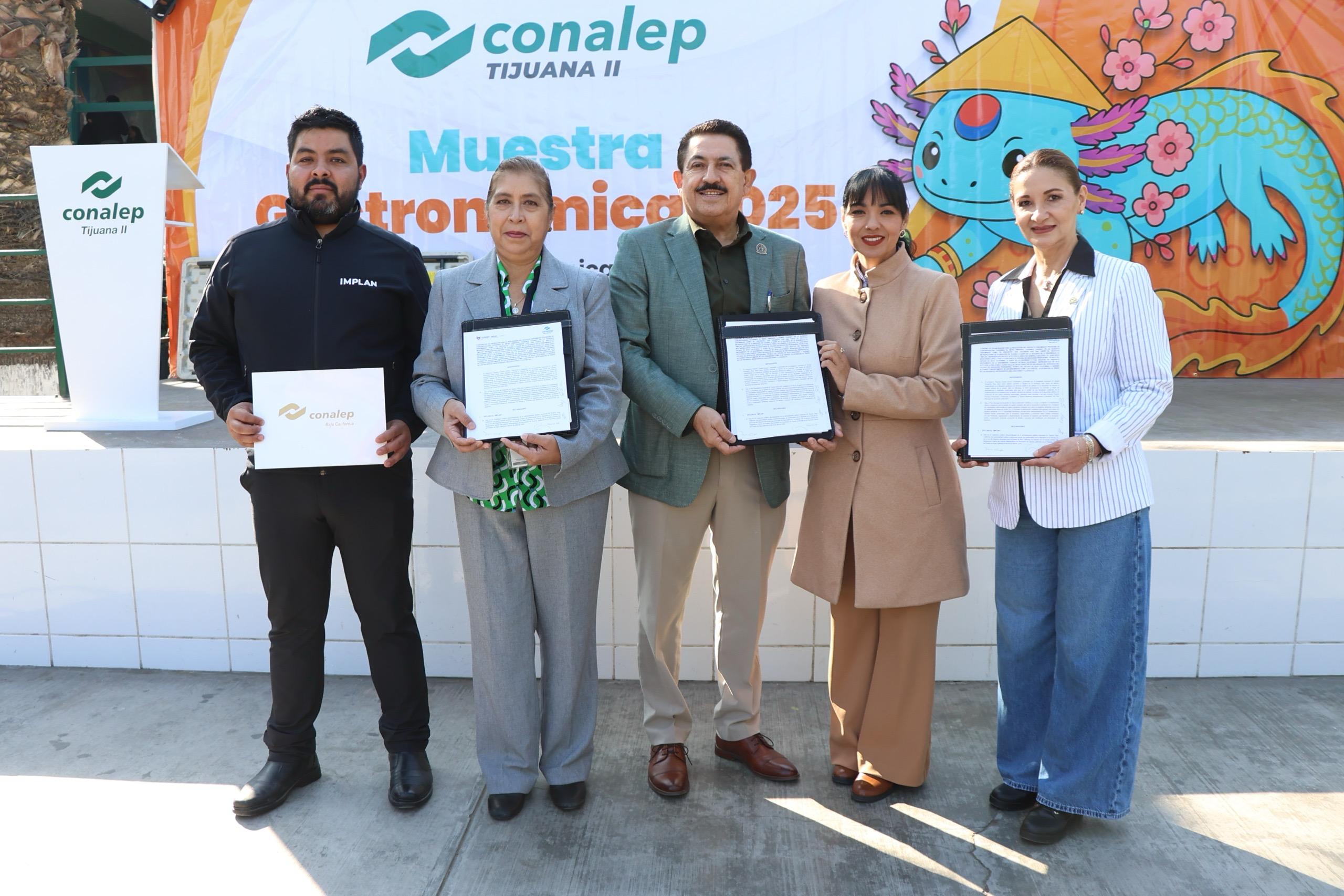 Durante el acto estuvieron presentes: Juan Roberto Salas Gómez, director de Enlace e Inversión del IMPLAN; Jorge Luis Valenzuela Castillo, analista de Vinculación del IMPLAN; así como las directoras de los planteles Conalep Tijuana, Martha Cecilia Arévalo Mendoza y Claudia Mora Mejía.