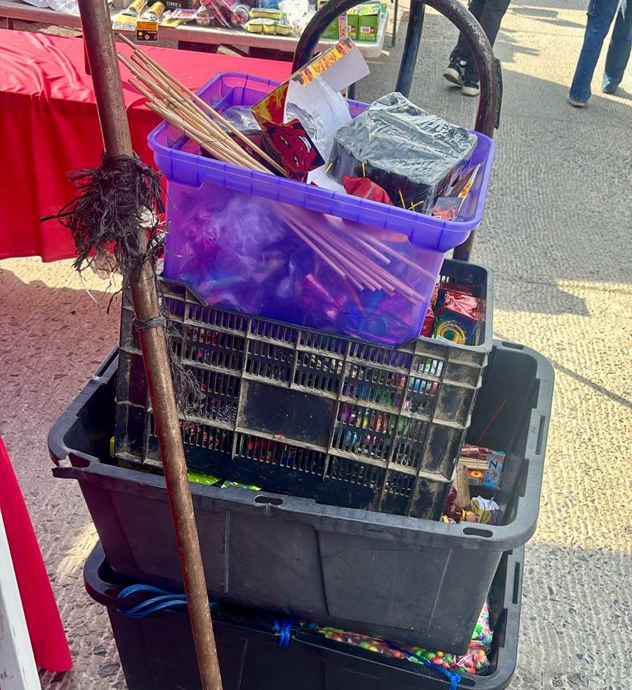 El decomiso, efectuado por personal de la Dirección de Inspección y Verificación, ocurrió durante un recorrido en la colonia Cañadas del Florido, donde se detectó un puesto en un mercado sobre ruedas que ofrecía pirotecnia de manera ilegal.