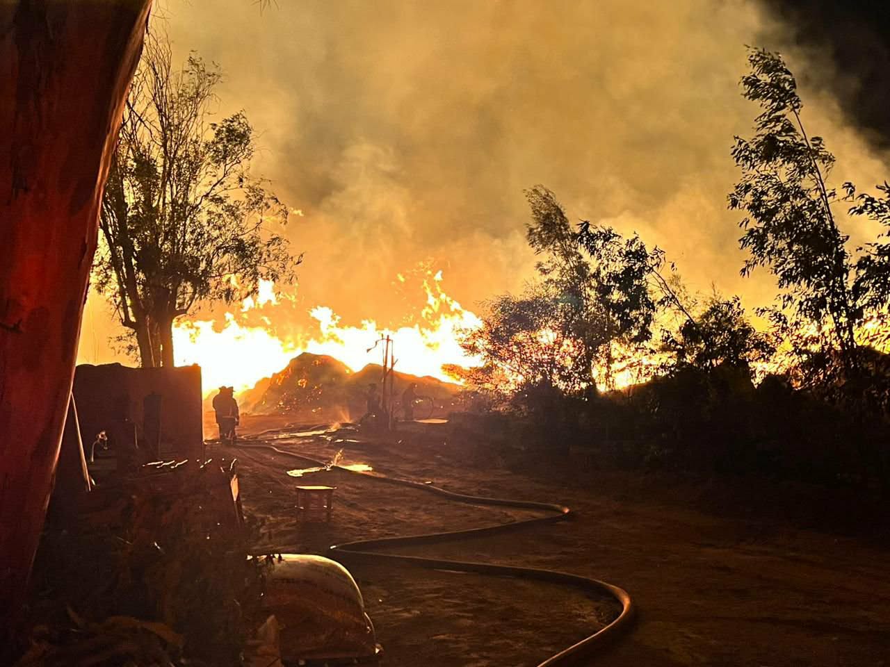 Elementos de la Dirección Municipal de Protección Civil de Tijuana, en coordinación con la Dirección de Bomberos, lograron controlar el incendio registrado en una procesadora de aserrín ubicada sobre un camino vecinal en El Refugio.