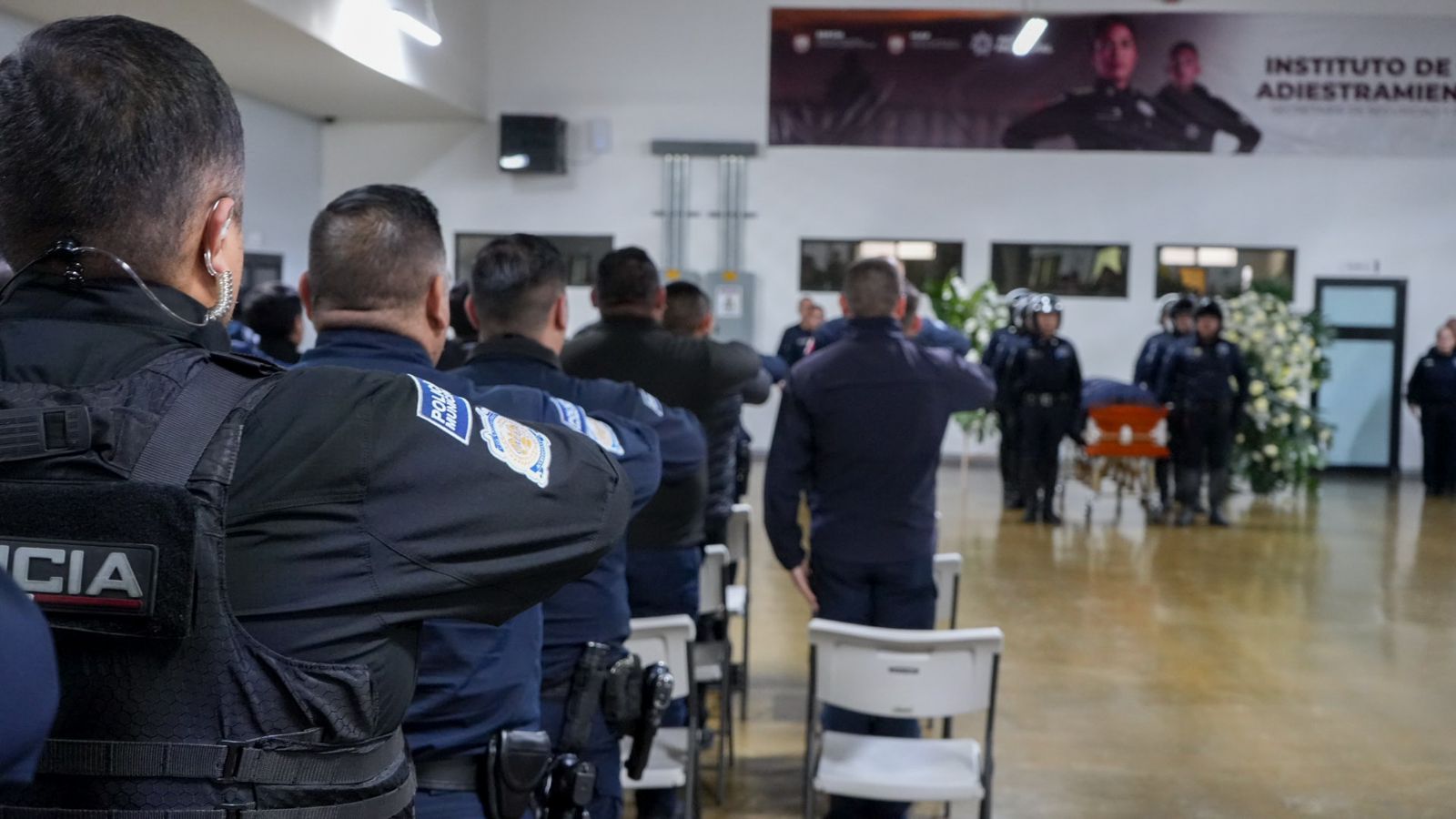Tijuana, B. C., a 7 de febrero del 2025.- La mañana de este viernes, se llevó a cabo una ceremonia luctuosa en memoria del Oficial Flores Munguía Efraín, quien falleció el pasado 4 de febrero en una lucha por su salud.