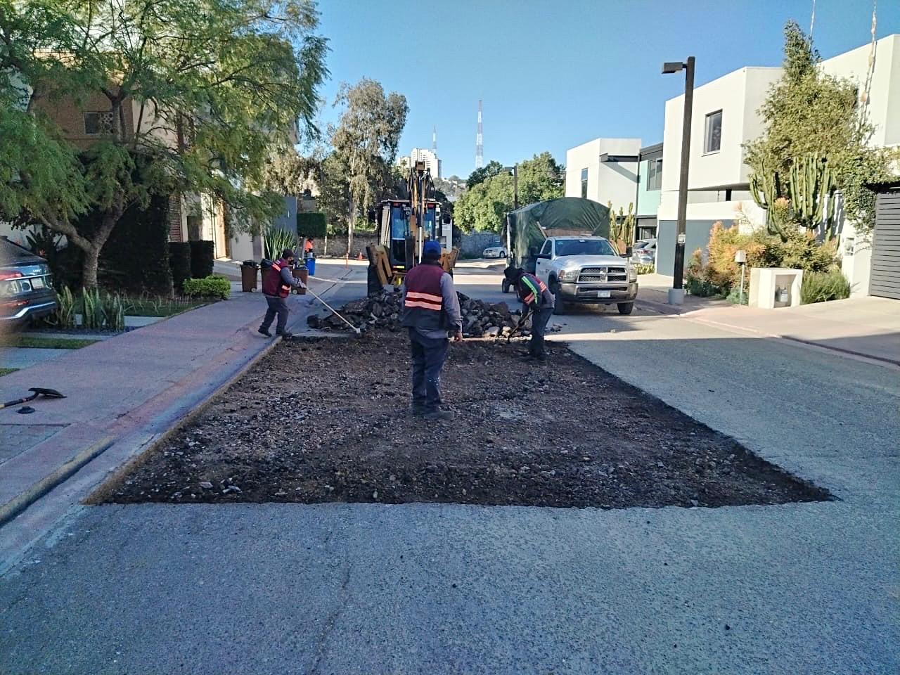 En la Delegación La Presa Este se realizaron trabajos de bacheo en el bulevar Las Fuentes, donde se atendieron 116 metros cuadrados con mezcla asfáltica en caliente, en beneficio de 5 mil personas; y también, en la calle Europa, de la colonia El Refugio, con una superficie de 100 metros cuadrados, favoreciendo a alrededor de 3 mil 500 habitantes.