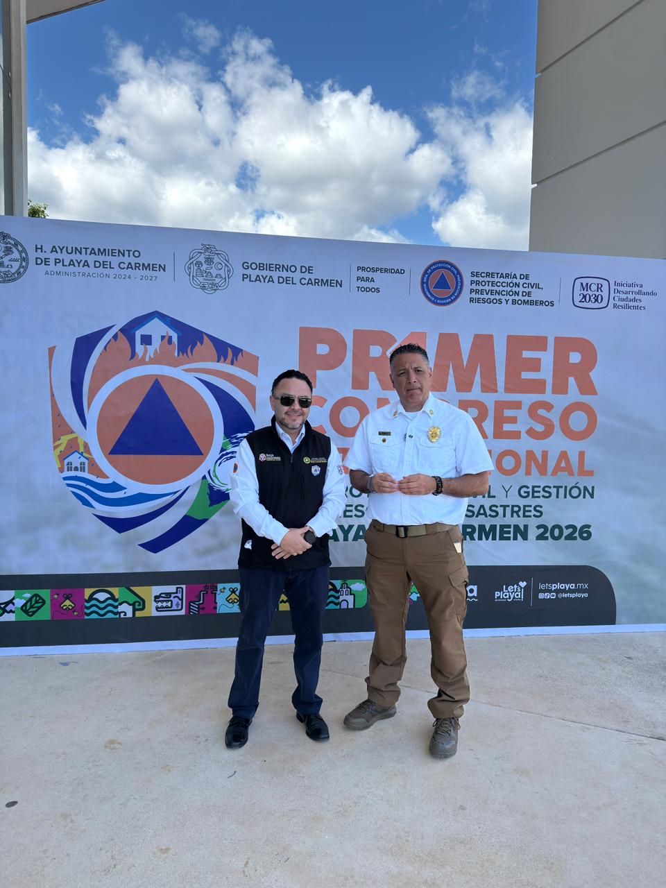 Protección Civil Tijuana participa activamente en el Primer Congreso Internacional de Protección Civil en Gestión de Riesgo y Desastre, que se lleva a cabo del 25 al 27 de febrero en el teatro de Playa del Carmen, evento que reúne a representantes de 12 países y más de 25 estados de la República Mexicana.