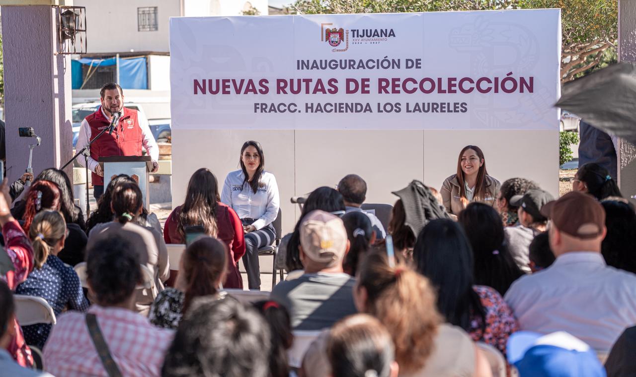 Tijuana, Baja California, a 25 de febrero del 2026. El presidente municipal de Tijuana, Ismael Burgueño Ruiz, puso en marcha seis nuevas rutas de recolección de basura en el fraccionamiento Hacienda Los Laureles, las cuales brindarán el servicio gratuito en 36 calles, en beneficio de mil 649 viviendas, fortaleciendo así el servicio público y mejorando la calidad de vida de las y los habitantes de la zona.