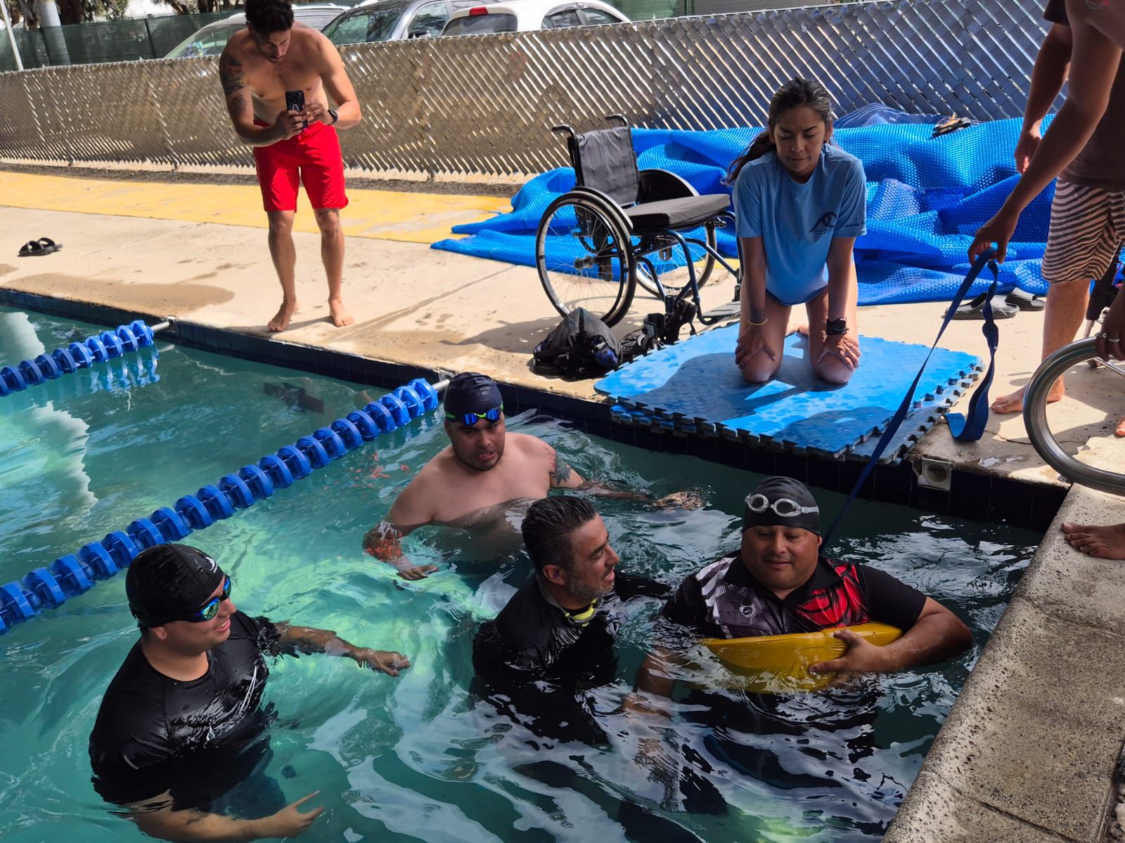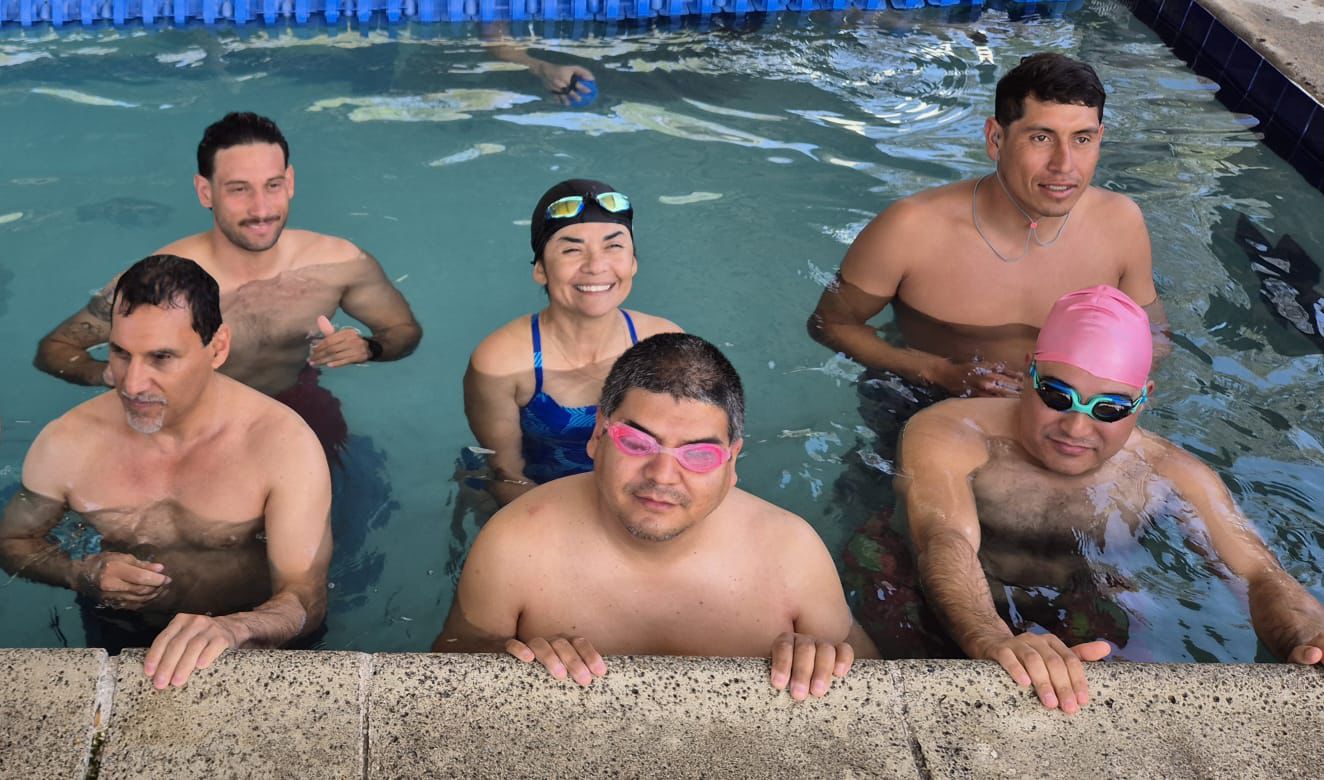 Tijuana, Baja California, a 14 de marzo de 2026. El Gobierno del presidente municipal, Ismael Burgueño Ruiz, a través del Instituto Municipal del Deporte de Tijuana (IMDET), inició el programa gratuito y permanente de Natación para Personas con Discapacidad 'Familia Access', en la alberca de la Unidad Deportiva CREA.