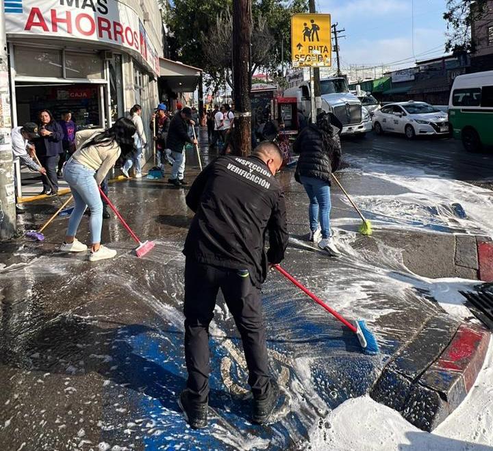 En este sentido, el director de Inspección y Verificación, José Antonio Olivas Heredia, refirió que para el desarrollo de estas acciones, se contó con el apoyo de aproximadamente 50 comerciantes, además de pipas de agua, lo que permitió realizar trabajos de limpieza profunda en banquetas y vialidades, contribuyendo al mejoramiento de la imagen urbana.